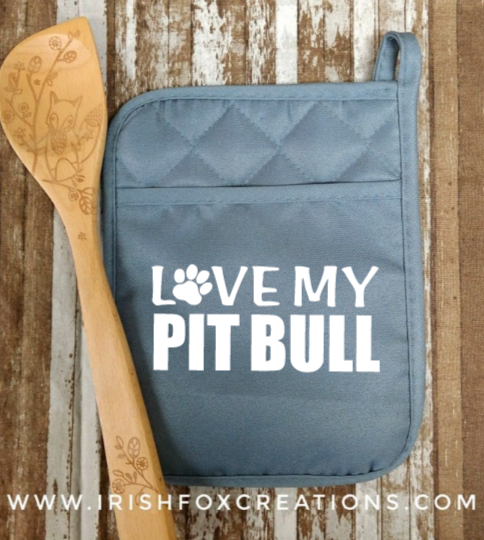 "Love my Pit Bull" with Heart Nose Pot Holder