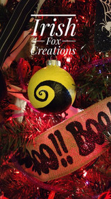the finishing touch on our Halloween tree was Jack Skellington on top! I tied this bow onto the tree because I thought it would look good and Jack needed a little help sitting up.